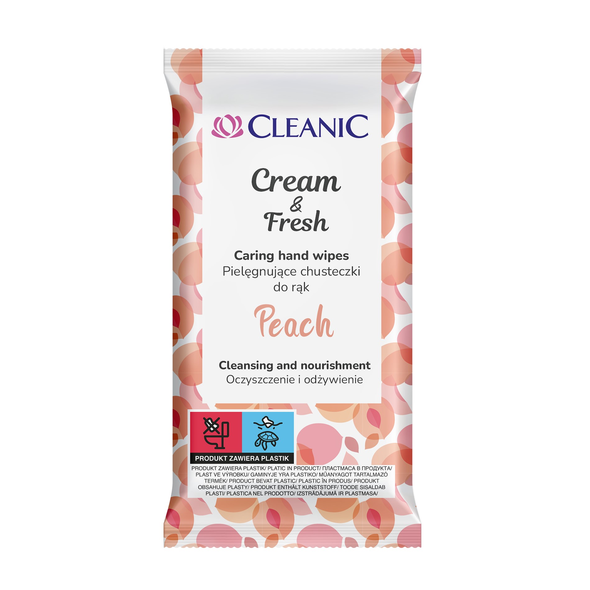 CLEANIC CREAM & FRESH PEACH rankų priežiūros servetėlės (15 ml)
