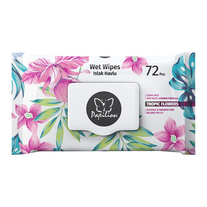 PAPILION TROPIC FLOWERS drėgnos servetėlės (72 vnt.)