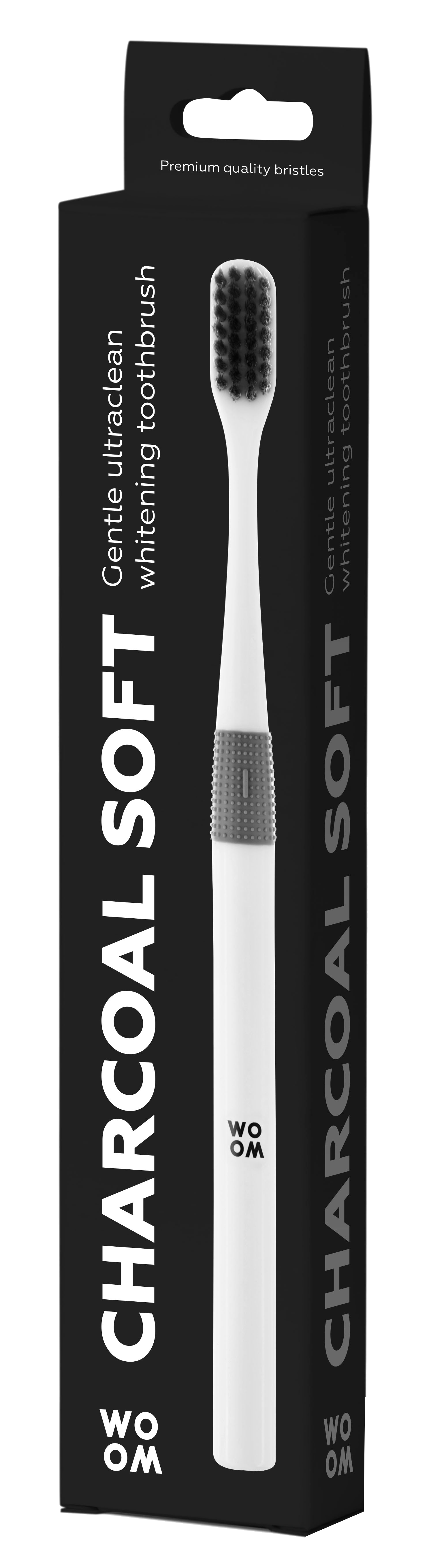 WOOM minkštas dantų šepetėlis su aktyvuota anglimi CHARCOAL SOFT 1 vnt