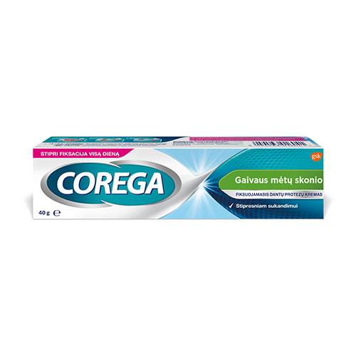 Fiksuojamasis dantų protezų kremas gaivaus mėtų skonio stipri fiksacija visą dieną COREGA 40 g