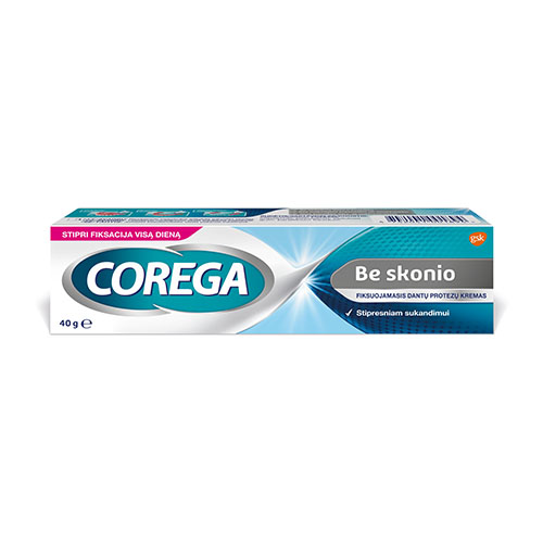 Fiksuojamasis dantų protezų kremas be skonio stipri fiksacija visą dieną COREGA 40 g