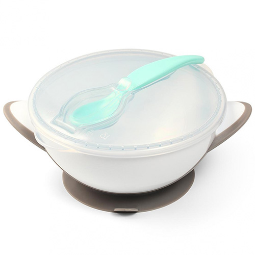 BabyOno lėkštė limpančiu dugnu + šaukštelis Nuo 6+ mėn., (pilka) 1063/02