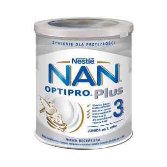 NESTLE pieno mišinys vaikams NAN OPTIPRO PLUS 3 JUNIOR nuo 1 m 800 gspecialus dozavimo šaukštelis