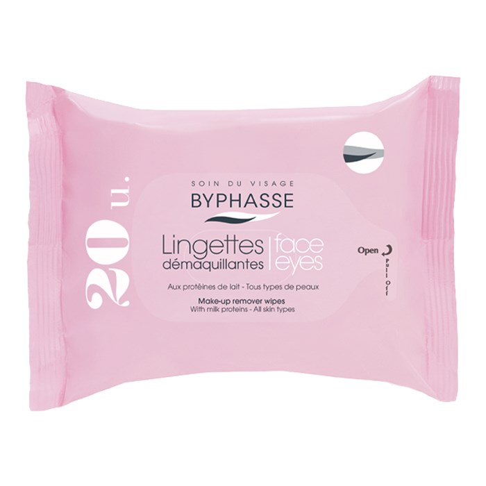 BYPHASSE MILK PROTEINS drėgnos servetėlės veido ir akių makiažui valyti (20 vnt.)