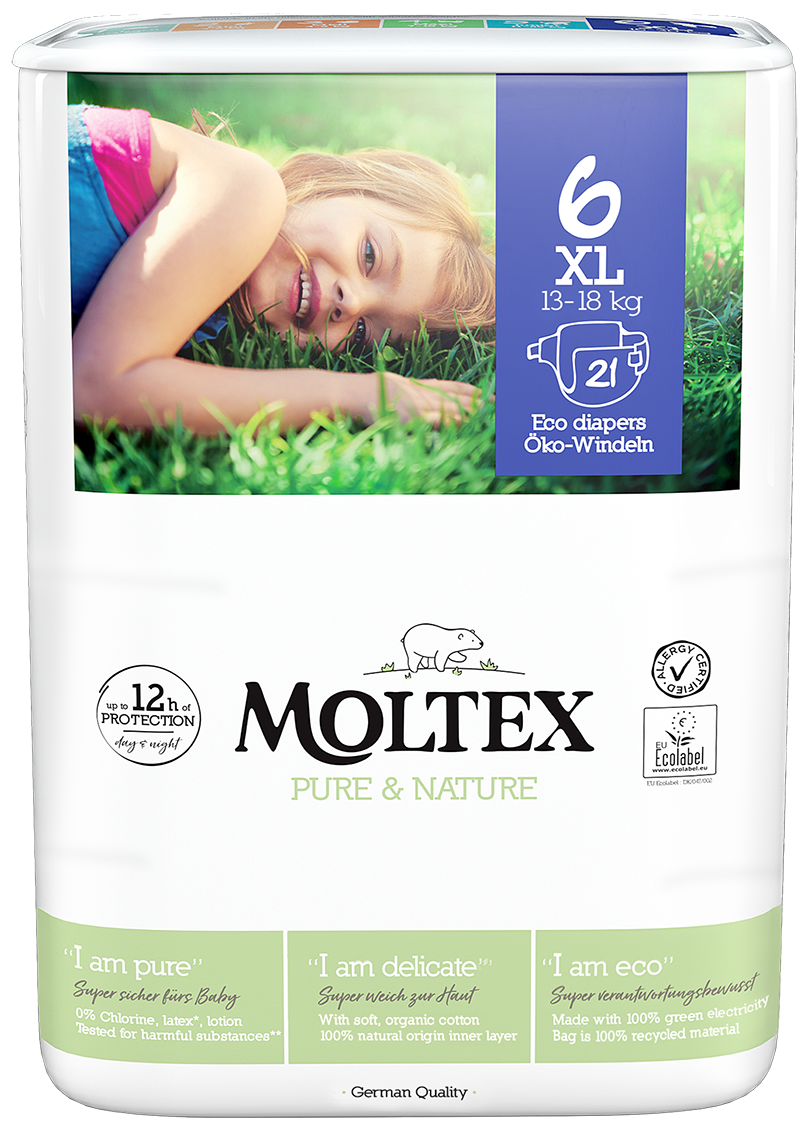 MOLTEX Pure & Nature 6 XL sauskelnės, 21 vnt.