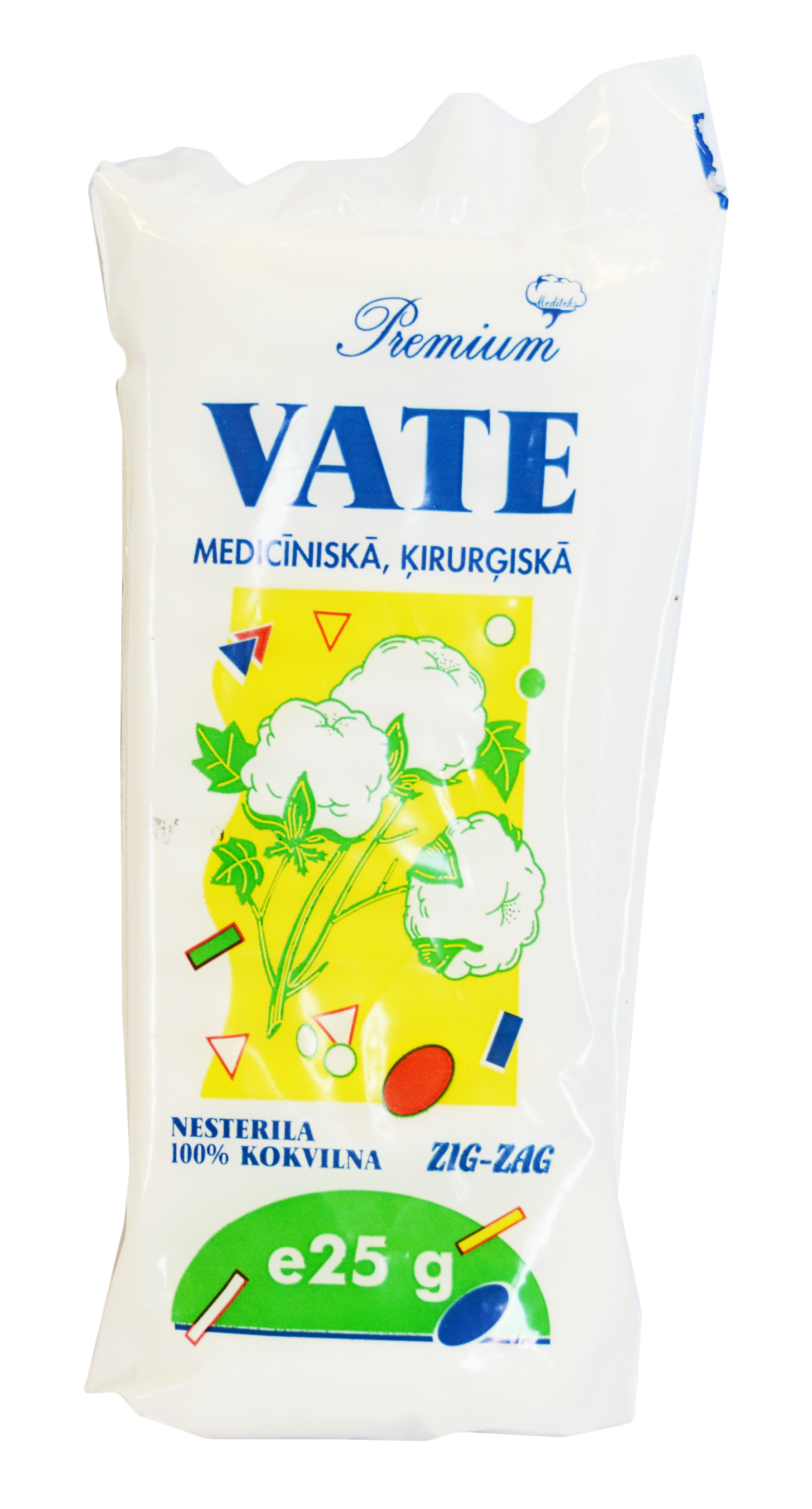 Mediteks Premium medicininė, chirurginė, zigzaginė vata, 25 g