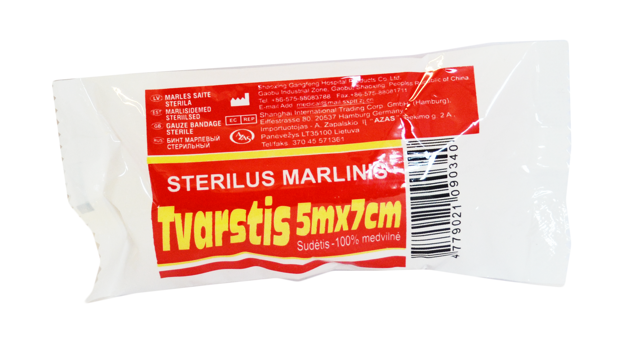 Azas sterilus marlinis tvarstis bintas 5 m x 7 cm N1