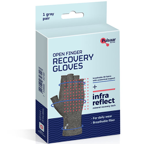 PULSAAR ACTIVE Atvirapirštės pirštinės atsistatymui pora Pilka spalva S dydis