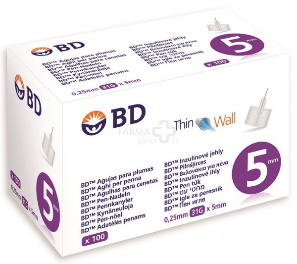 Insulininės adatos BD Pen 025 mm 31G x 5 mm N100
