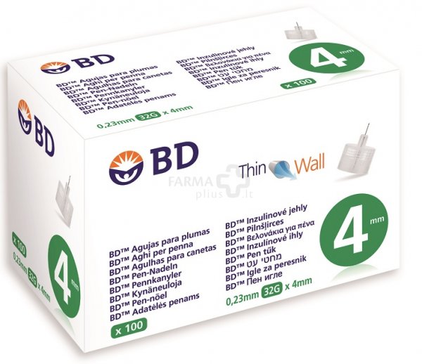 Insulininės adatos BD Pen 023 mm 32G x 4 mm N100 Dabar 8