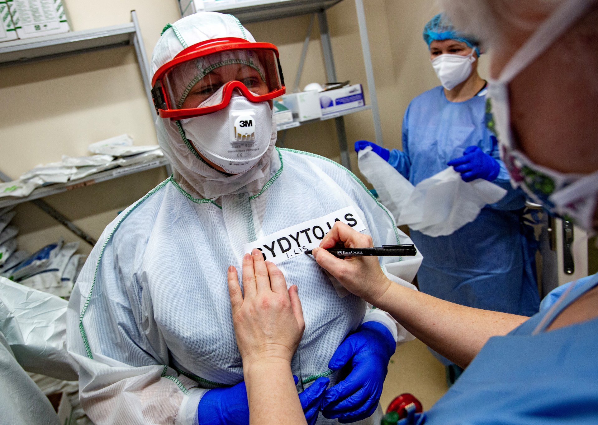 Su COVID-19 pacientais dirbantis gydytojas-anesteziologas reanimatologas R.Samalavičius sako, kad sunkiausias mėnuo buvo balandis, kuomet buvo daugiausia sunkių ligonių. Reikėjo priprasti prie darbo su apsaugos priemonėmis: „Visi darbai buvo atliekami tik su specialiomis apsaugos priemonėmis, reikėjo priprasti. Apsirengimo procedūra, o ypač šių priemonių nuėmimo procedūra turėjo būti atliekama saugiai, kad pats neužsikrėstum. Reikėjo to išmokti, po to nuolat dirbti su tomis priemonėmis – specialiu kombinezonu, chalatu, apsauginiais akiniais, respiratoriais, su kuriais kvėpavimas apsunkintas. To anksčiau niekada nesame darę, – sako gydytojas R.Samalavičius, – negali tiesiog nueiti pas ligonį, pirma turi apsirengęs, o atlikęs savo darbą, nusirengti saugiai.“