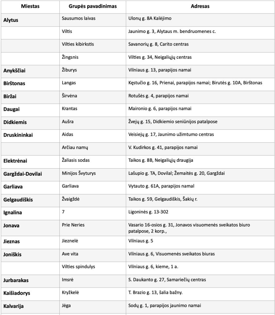 AA grupės Lietuvoje: