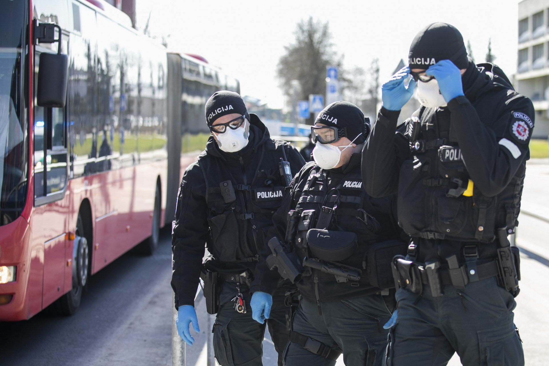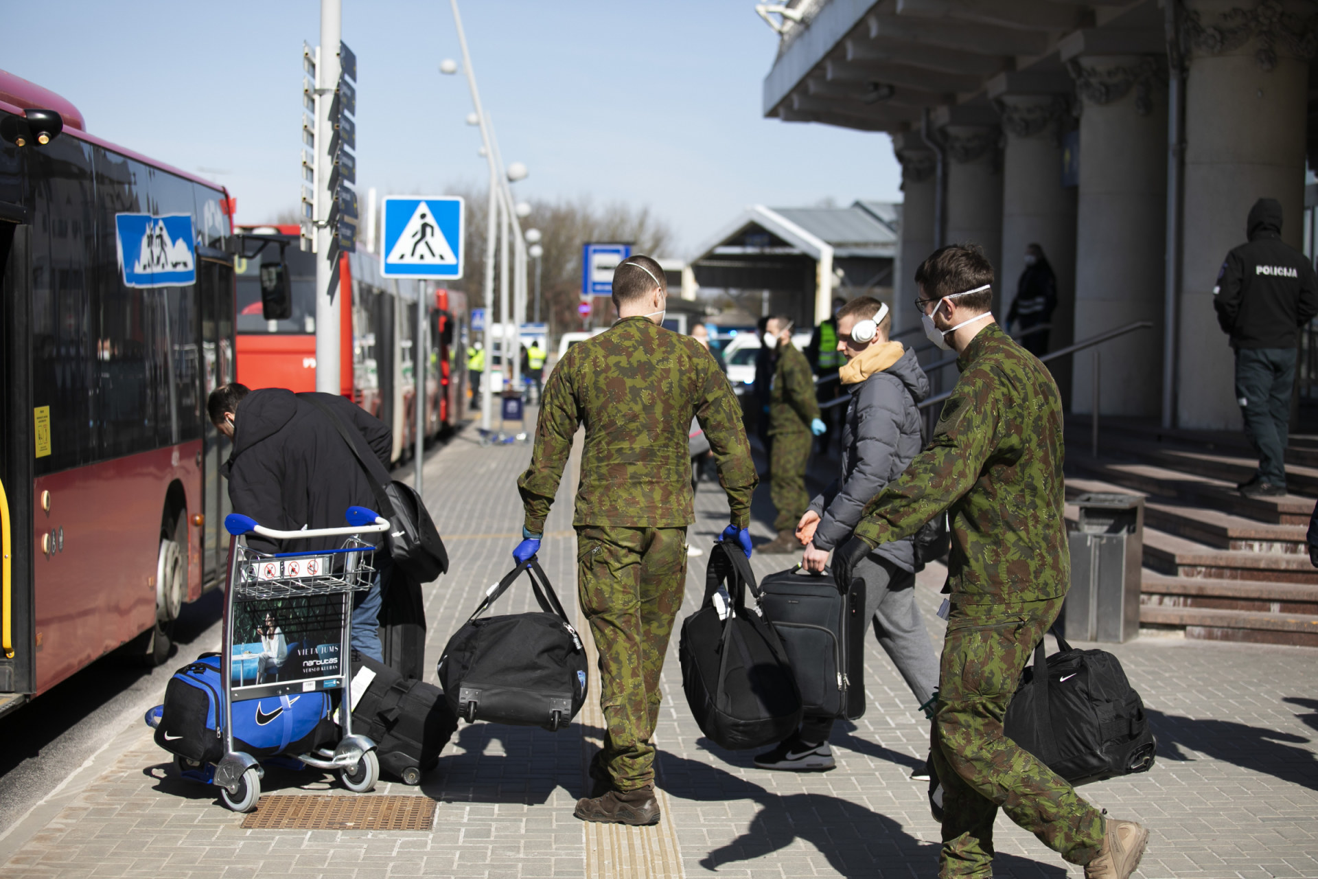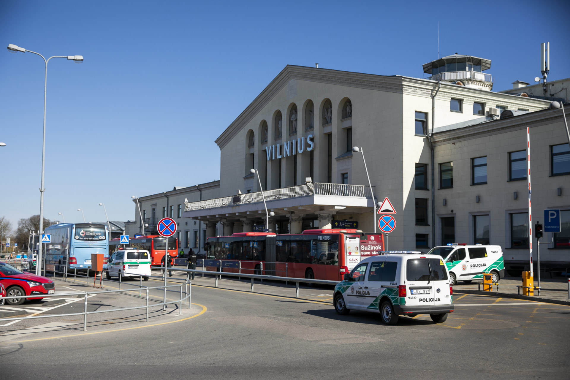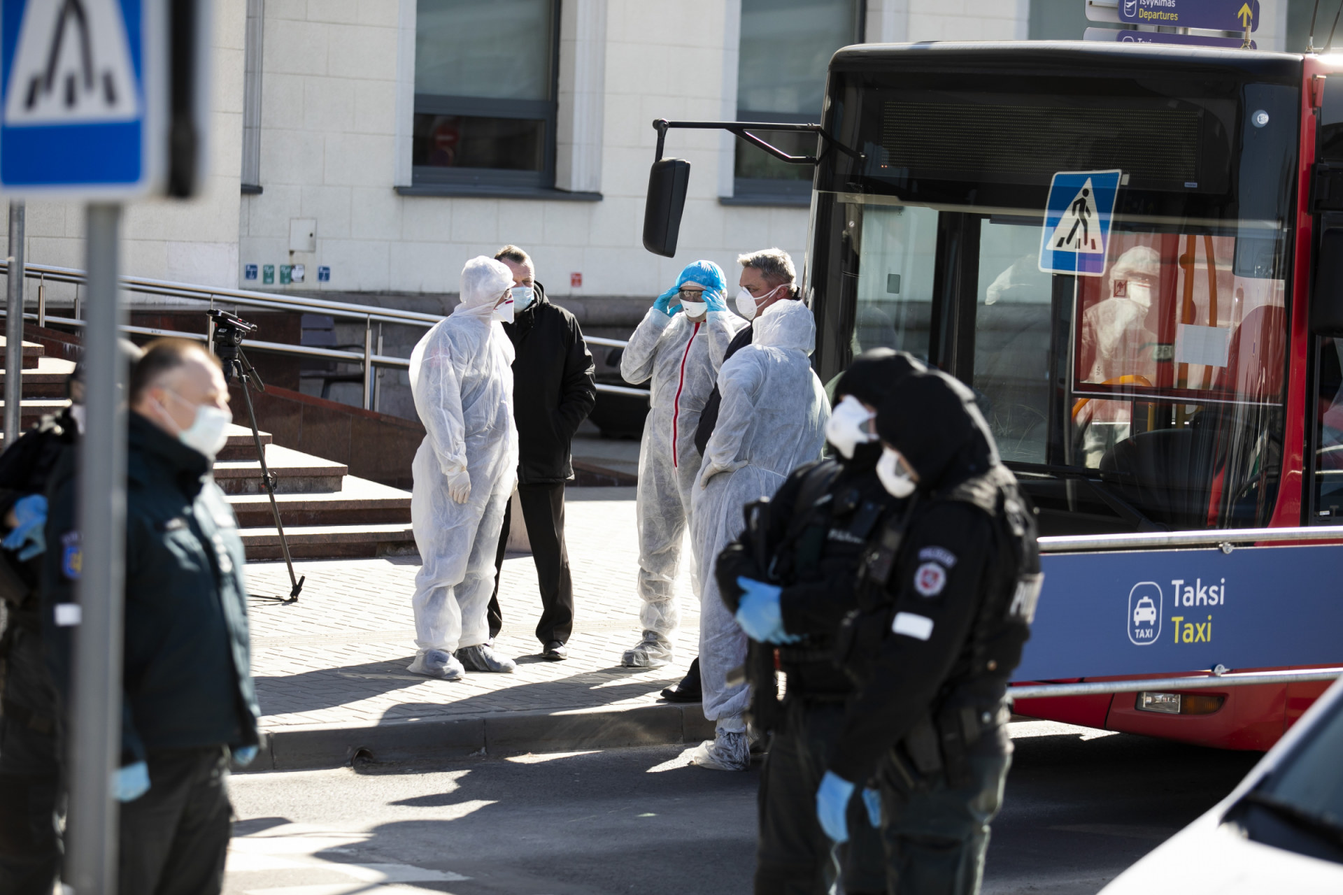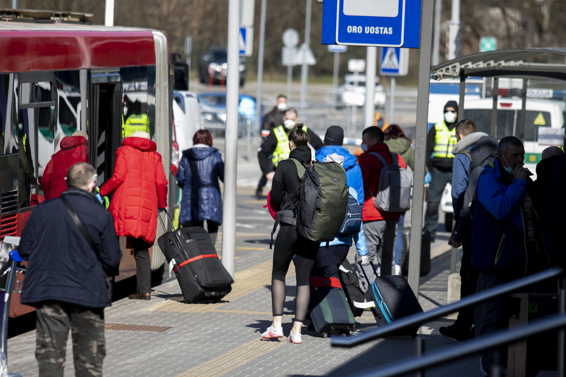 - Specialiosios tarnybos ir autobusai laukia atvykstanciu keleiviu Vilniaus oro uoste. BNS nuotr.