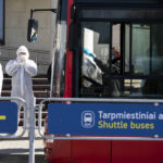 - Specialiosios tarnybos ir autobusai laukia atvykstančių keleivių Vilniaus oro uoste. BNS nuotr.
