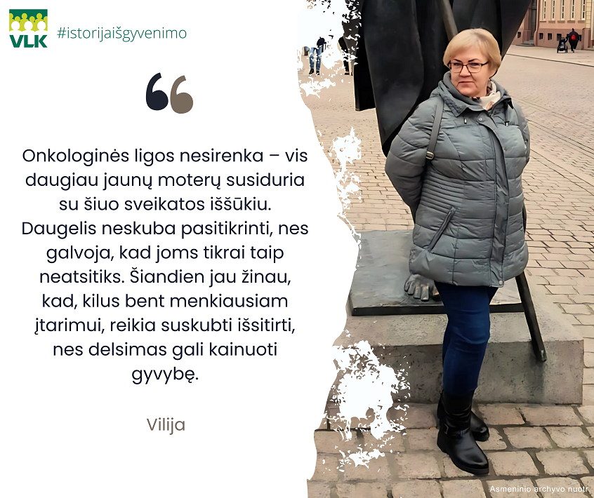 Vilija neslepia – nusprendusi kalbėti apie ligą ir sveikimo kelią atvirai, tikisi paskatinti moteris labiau rūpintis savimi. „Onkologinės ligos nesirenka – vis daugiau jaunų moterų susiduria su šiuo sveikatos iššūkiu. Noriu pabrėžti, kad net menkiausias kūno pokytis gali būti ženklas, kad organizme prasidėjo negeri procesai. Šiandien jau žinau, kad, kilus bent menkiausiam įtarimui, reikia suskubti pas gydytoją ir išsitirti, nes delsimas gali kainuoti gyvybę“, – pašnekovė drąsina moteris ir viliasi, kad jos istorija paskatins kitas nebijoti kreiptis pagalbos, tikrintis ir apie tai kalbėti.
