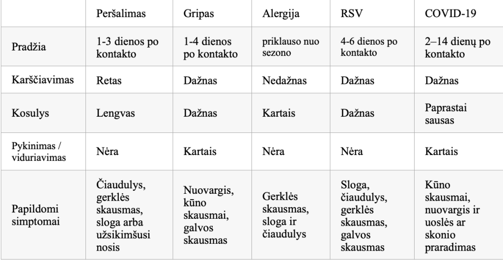 Žinoma, sužinoti, ar užsikrėtėte COVID-19, gripu ar kitais virusais (pvz., respiraciniu sincitiniu virusu – RSV), geriausiai padės gydytojai, atlikę diagnostinius COVID-19 testus. Jei gydytojas atmeta tikimybę, jog sergate minėtų virusų sukeltomis infekcijomis, tikėtina, jūsų kosulio priežastis gali būti peršalimas. Be to, peršalimas paprastai netrunka taip ilgai kaip gripas ar COVID-19.