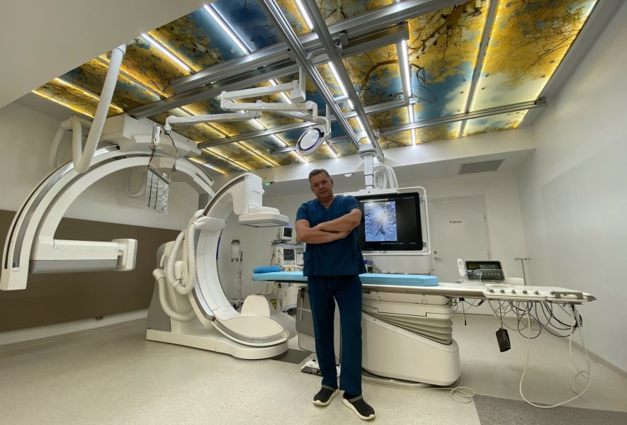 „Aortos pažeidimas buvo kompleksinis ir apėmė tiek krūtinės, tiek pilvo arterijas, įskaitant inkstų, pasaito ir visceralinio kamieno arterijas. Siekiant išsaugoti ir atkurti kraujotaką gyvybiškai svarbiuose organuose, teko pasitelkti modernesnį šakotą stentgraftą, kuris leido tiksliai sujungti pažeistas aortos dalis su šiomis arterijomis. Tai buvo itin sudėtinga procedūra, reikalaujanti kruopštaus kiekvienos stentgrafto atšakos įvedimo į tinkamą vietą, todėl aortos rekonstrukcija truko ilgiau nei įprastai“, – pasakoja gyd. Andrius Pranculis.