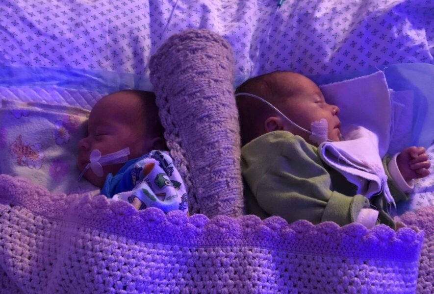 „Berniukai gimė gruodžio 29 dieną: vienas naujagimis svėrė 1646 gramus, kitas – 1340 gramų. Abu buvo iš karto nuvežti į Naujagimių intensyviosios terapijos skyrių, kuriame praleido dvi paras. Jiems taikyta kvėpuojamoji terapija, skiriami antibiotikai, o būklei pagerėjus po kelių dienų jie perkelti į Naujagimių ligų skyrių. Šiuo metu vaikai jau patys kvėpuoja, tačiau dar maitinami per zondą. Taip pat papildomai skiriami vitaminai. Tėvų meilė ir rūpestis padeda jiems sveikti greičiau“, – pasakojo Kauno klinikų Neonatologijos klinikos vadovė prof. Rasa Tamelienė.