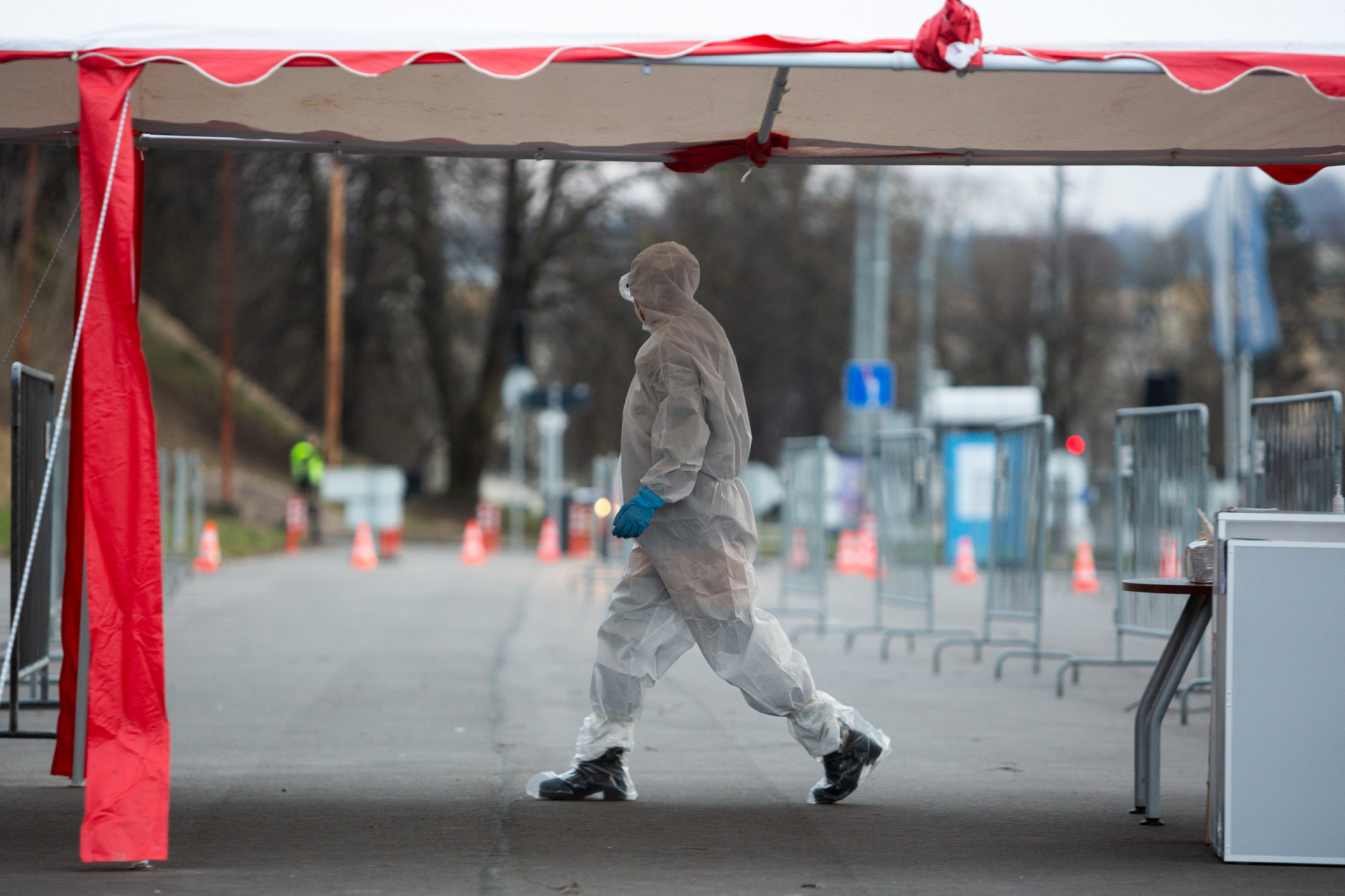 Sostinėje atidarytas pirmasis mobilus koronaviruso patikros punktas. BNS nuotr.