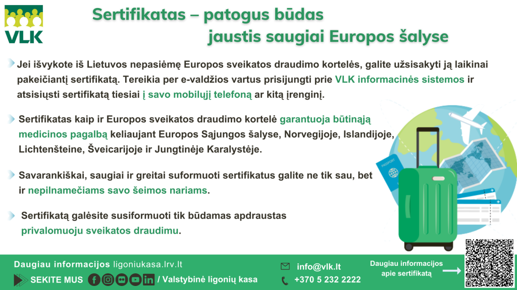 Ligonių kasos primena, kad kortelė ir sertifikatas yra skirti tik apdraustiesiems privalomuoju sveikatos draudimu. Nustojus galioti draudimui, jais naudotis negalima.